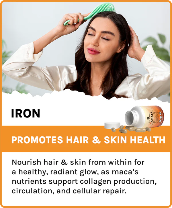 7. Hair & Skin Health – Hormonal imbalance and poor nutrition often dull your glow. Maca Plus, rich in zinc, copper, and antioxidants, nourishes from within promoting stronger hair, healthier skin, and a natural radiance.